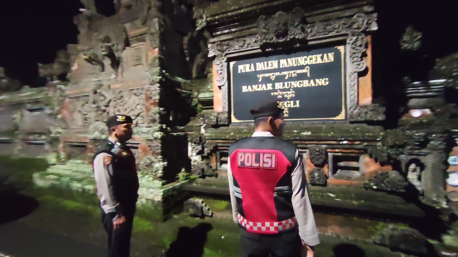 Menjaga Situasi Tetap Kondusi Pada Malam Hari, Sat Samapta Polres Bangli Sambangi Tempat Suci Pura Dalem Penunggekan, Kec. Bangli