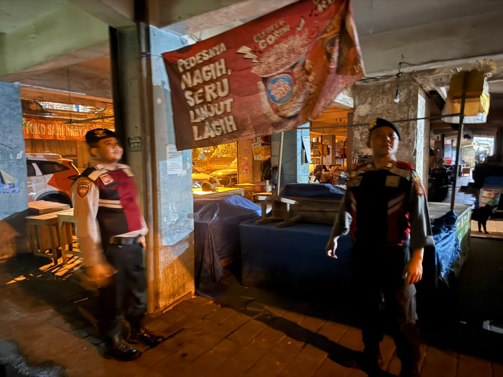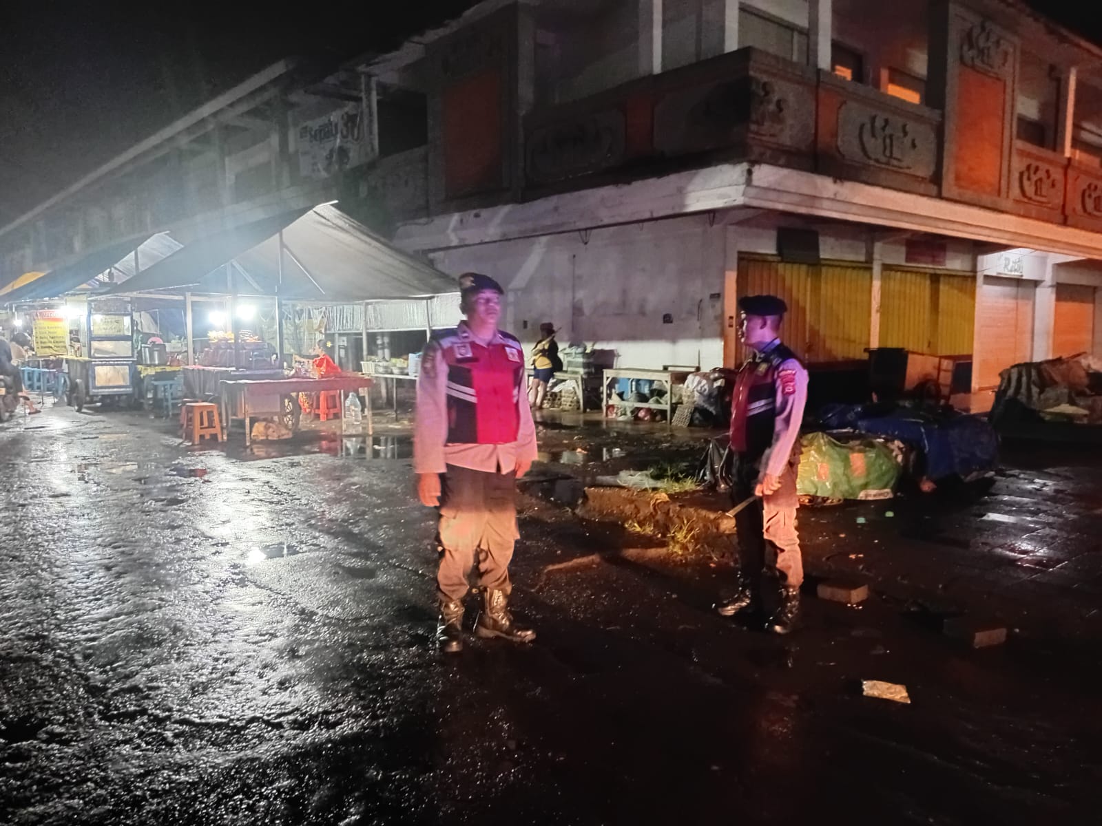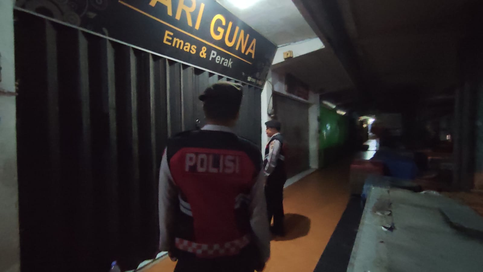 Antisipasi Gangguan Kamtibmas Pada Malam Hari, Personil Samapta Polres Bangli Lakukan Patroli Malam di Areal Pertokoan Pasar Kidul Bangli.