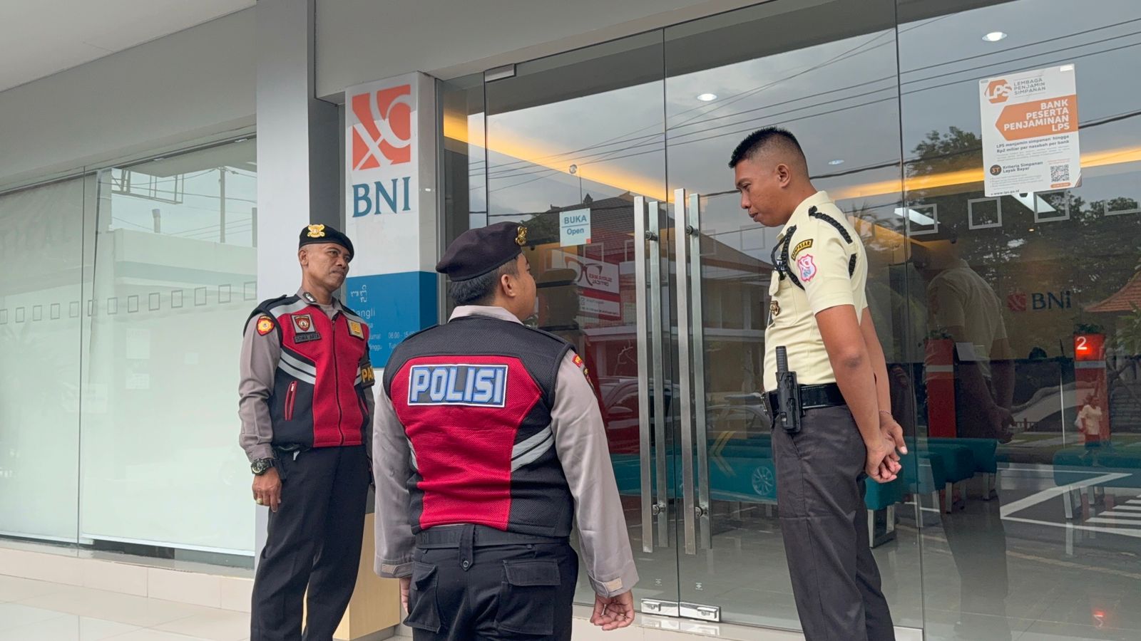 Sat Samapta Res Bangli Laksanakan Patroli Dialogis Dan Himbauan Kamtibmas Kepada Satpam Obyek Vital Bank BNI Cabang Bangli.