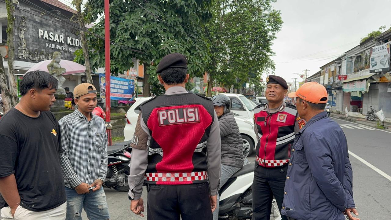 PERKECIL RUANG GERAK AKSI CURANMOR DIWILKUM BANGLI PERSONIL SAMAPTA POLRES BANGLI SAMBANGI TUKANG PARKIR