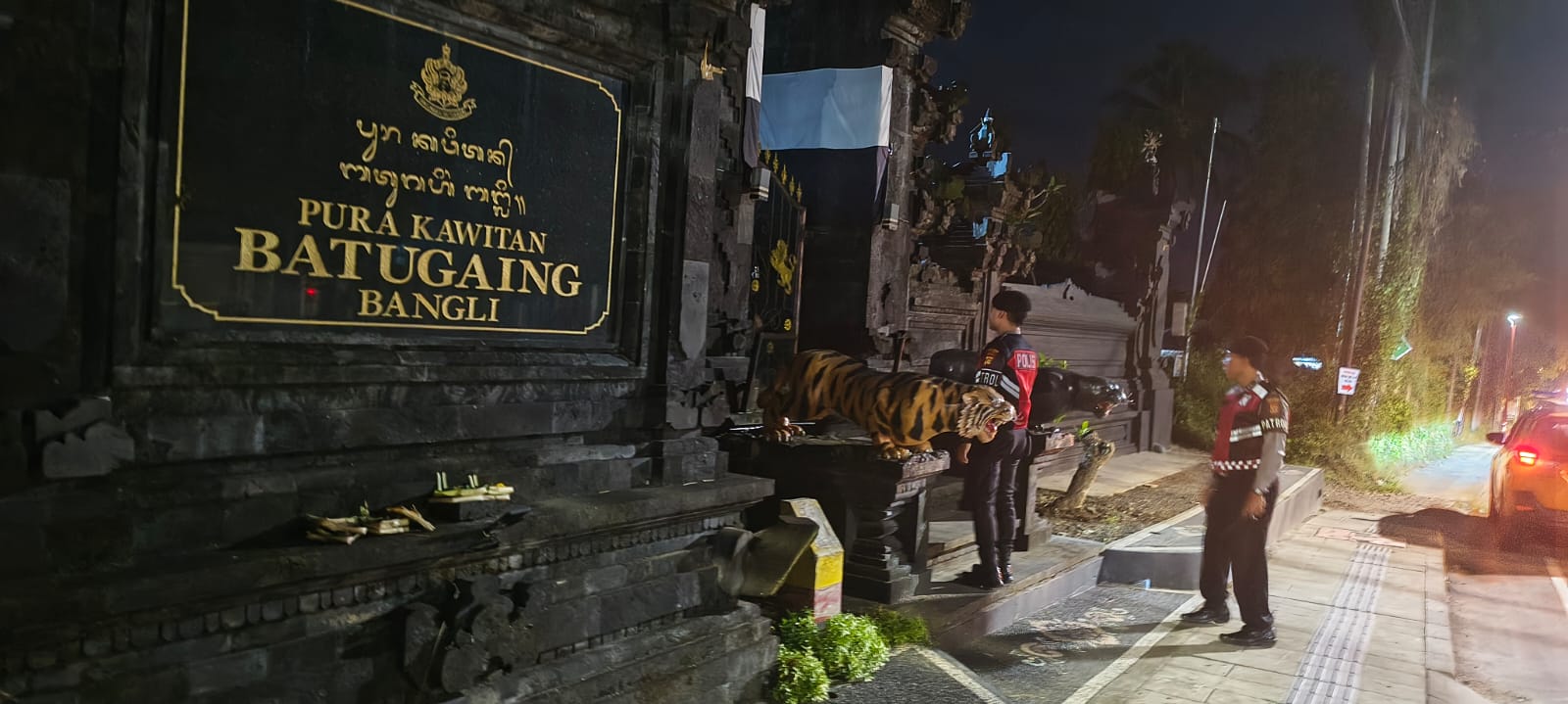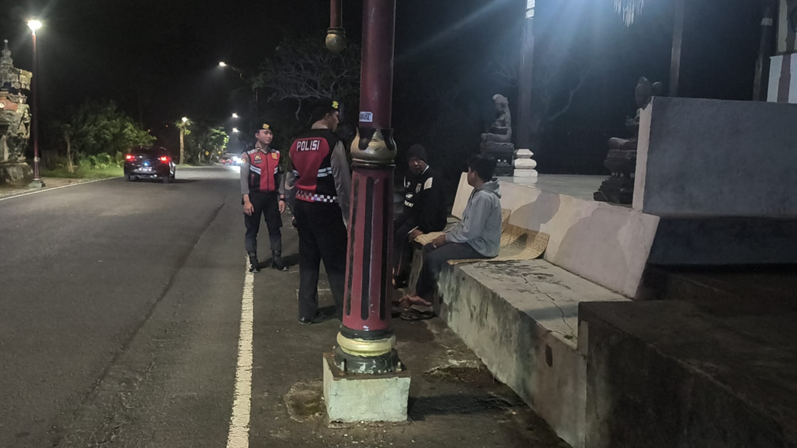 Menjaga Situasi Tetap Kondusi Pada Malam Hari,Sat Samapta Polres Bangli Sambangi Tempat Suci Pura Kawitan Batu Gaing ,Br Blumbang, Bangli