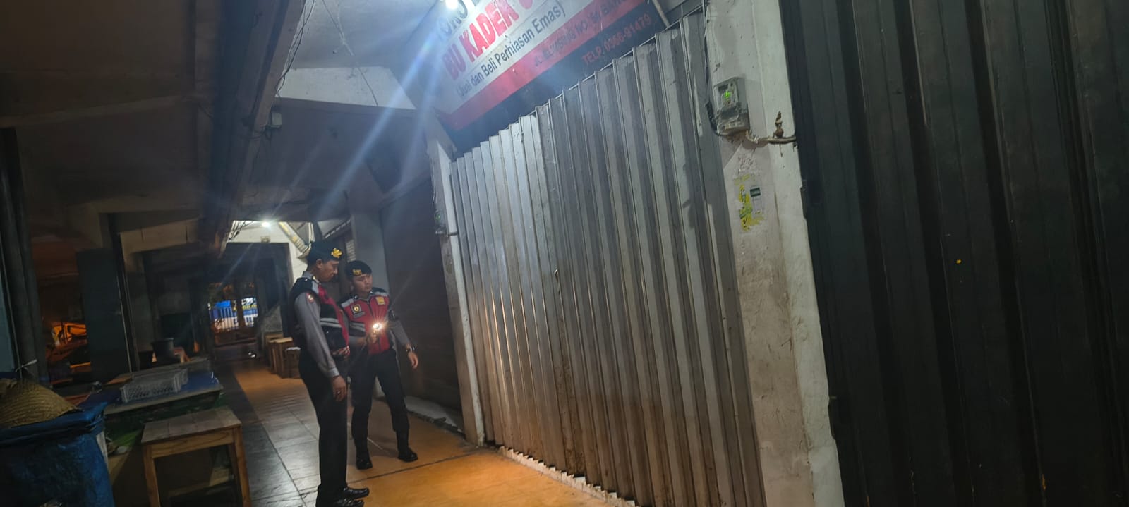Antisipasi Gangguan Kamtibmas Pada Malam Hari, Personil Samapta Polres Bangli Lakukan Patroli Malam di Areal Pertokoan Pasar Kidul Bangli.