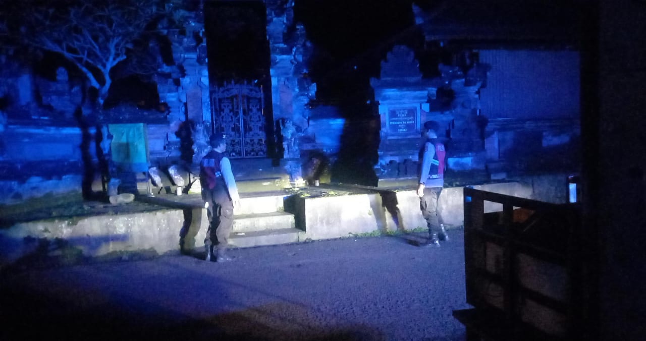 Menjaga Situasi Tetap Kondusi Pada Malam Hari, Sat Samapta Polres Bangli Sambangi Tempat Suci Pura Penataran Er Malet, Br Pule, Kec. Bangli