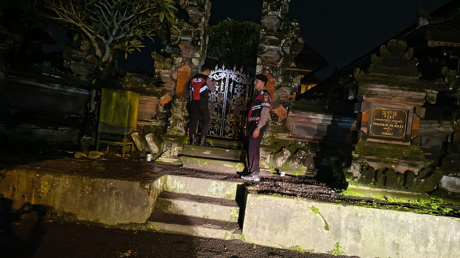 Menjaga Situasi Tetap Kondusi Pada Malam Hari,Sat Samapta Polres Bangli Sambangi Tempat Suci Pura Penataran Er Malet ,Br Pule, Bangli
