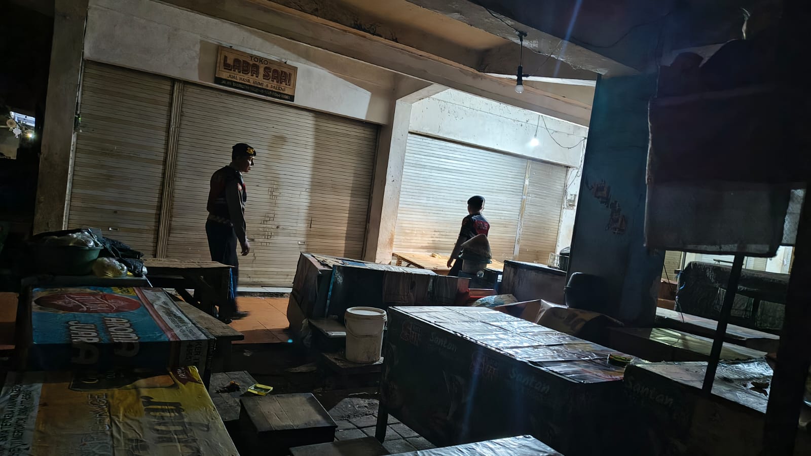 Antisipasi Gangguan Kamtibmas Pada Malam Hari, Personil Samapta Polres Bangli Lakukan Patroli Malam di Areal Pertokoan Pasar Kidul Bangli.