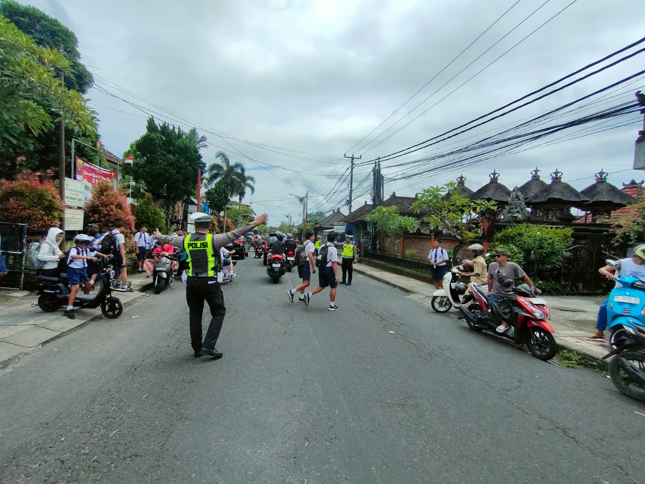 Bubaran Anak Sekolah, Unit Lantas Polsek Bangli Laksanakan Pengaturan di Depan SMPN 1 Bangli