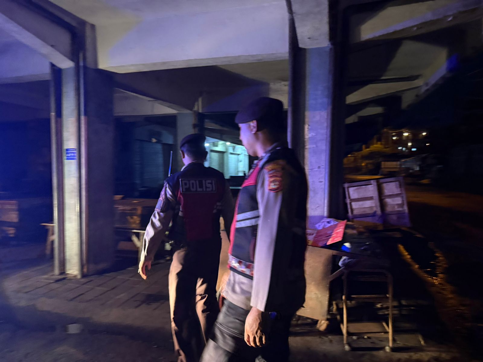Antisipasi Gangguan Kamtibmas Pada Malam Hari, Personil Samapta Polres Bangli Lakukan Patroli Malam di Areal Pertokoan Pasar Kidul Bangli.