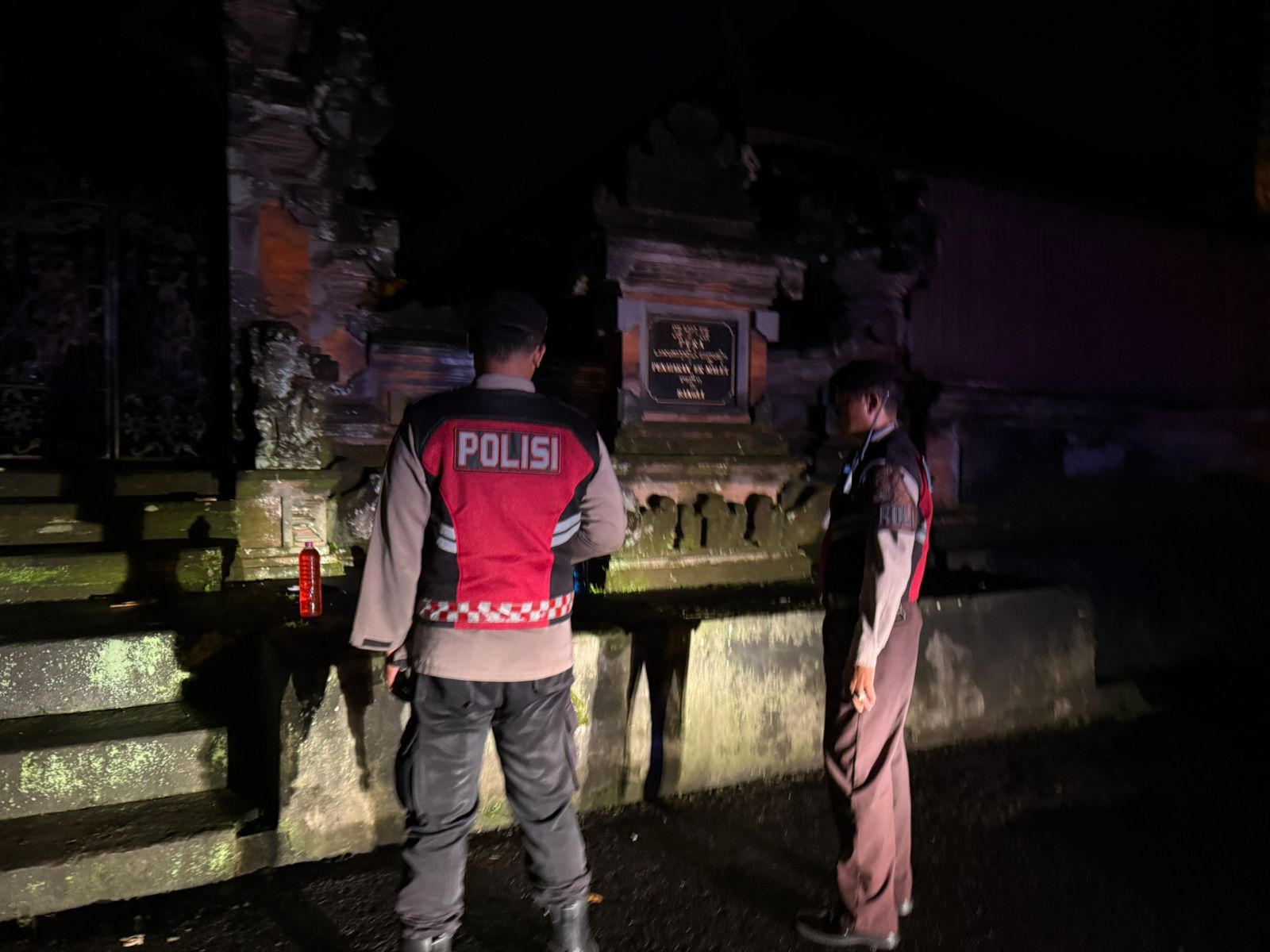 Menjaga Situasi Tetap Kondusi Pada Malam Hari, Sat Samapta Polres Bangli Sambangi Tempat Suci Pura Penataran Er Malet, Kel. Kawan, Kec. Bangli