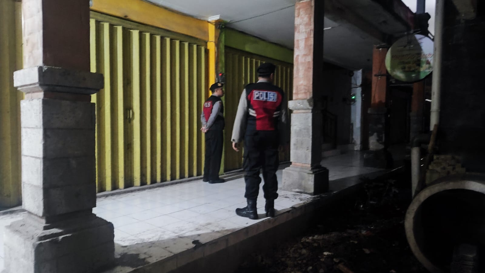 Antisipasi Gangguan Kamtibmas Pada Malam Hari, Personil Samapta Polres Bangli Lakukan Patroli Malam di Areal Pertokoan Pasar Kidul Bangli.