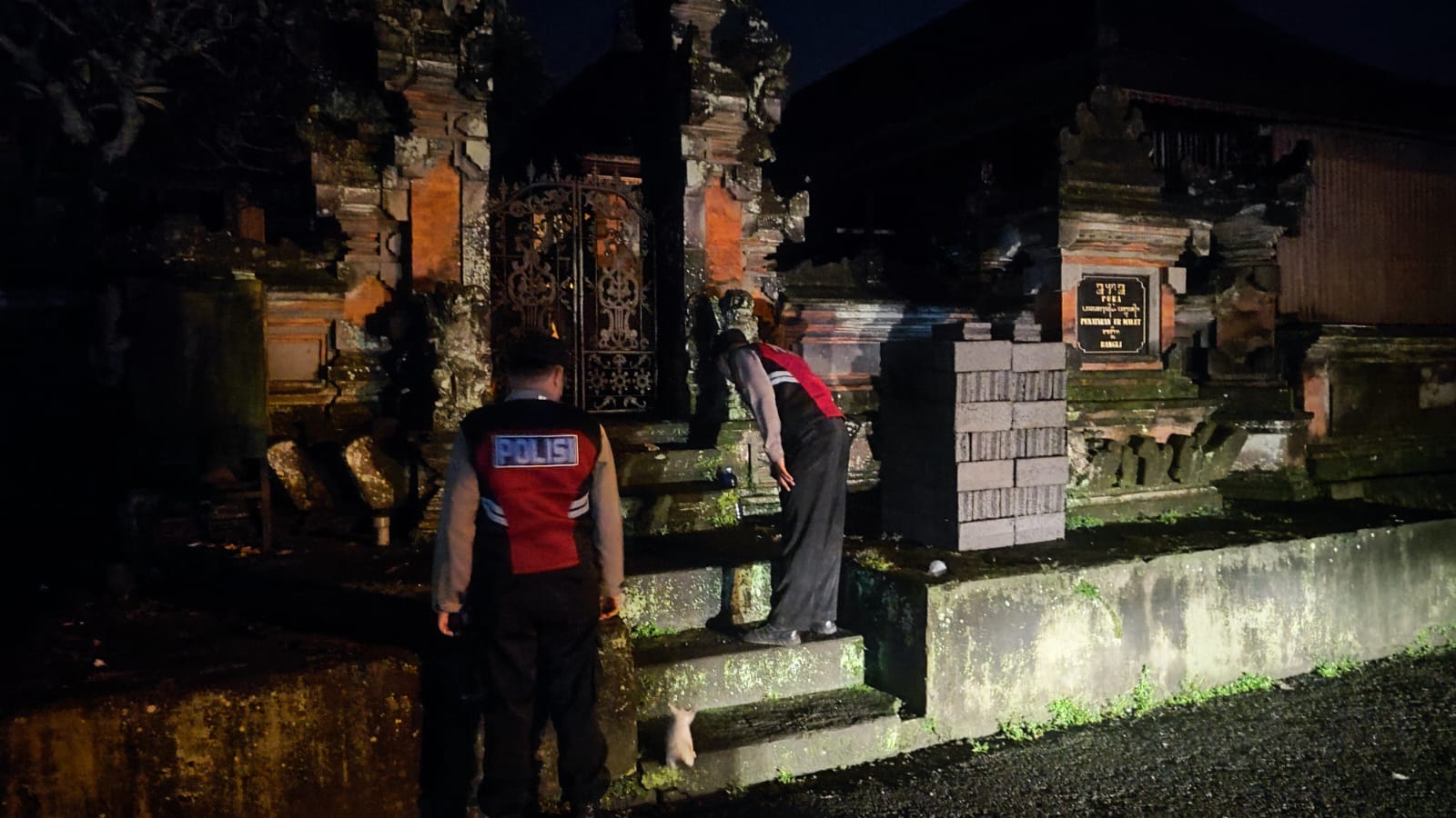 Menjaga Situasi Tetap Kondusi Pada Malam Hari, Sat Samapta Polres Bangli Sambangi Tempat Suci Pura penataran er malet Bangli