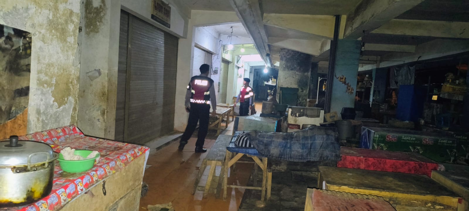 Antisipasi Gangguan Kamtibmas Pada Malam Hari, Personil Samapta Polres Bangli Lakukan Patroli Malam di Areal Pertokoan Pasar Kidul Bangli.
