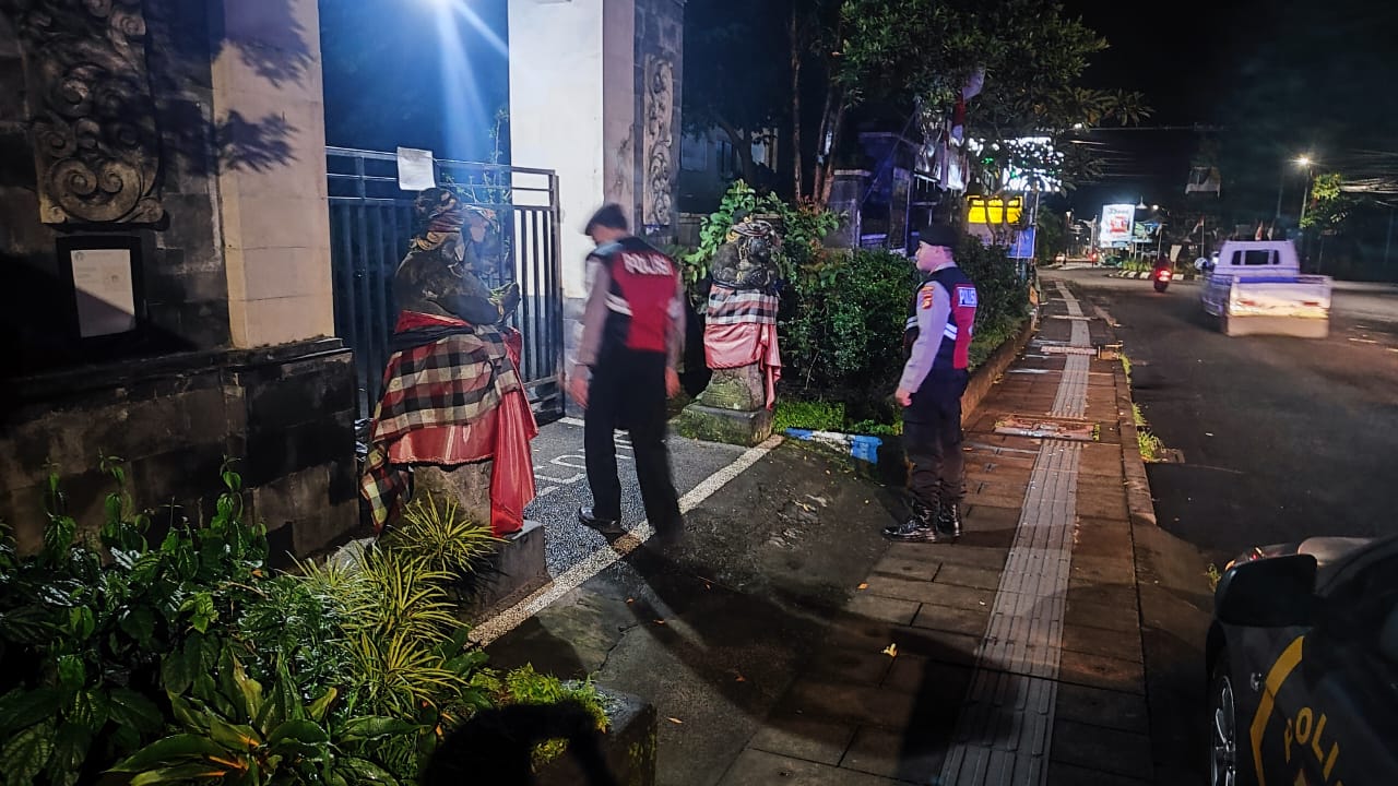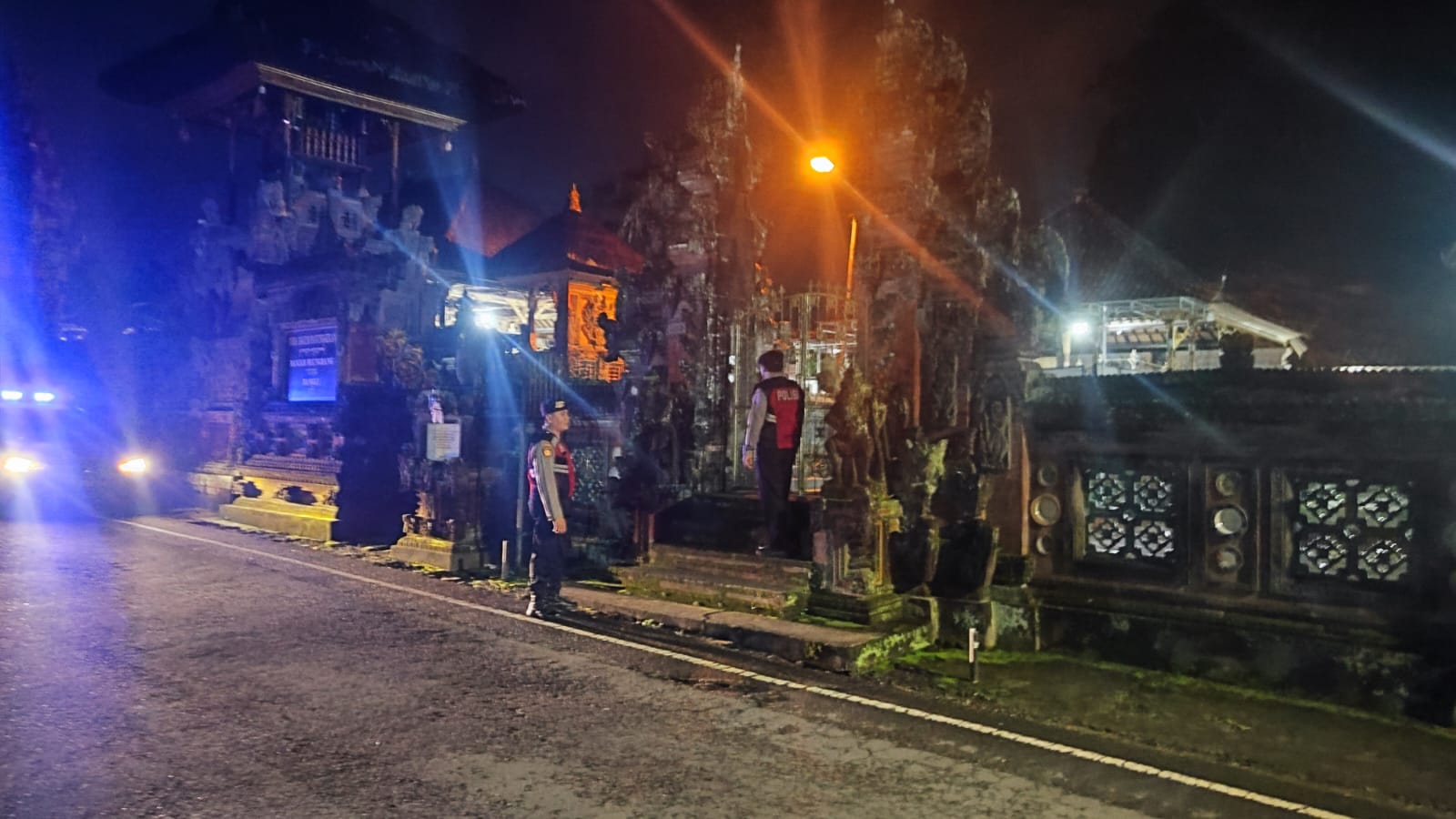 Menjaga Situasi Tetap Kondusi Pada Malam Hari, Sat Samapta Polres Bangli Sambangi Tempat Suci, Pura penataran puseh bale agung