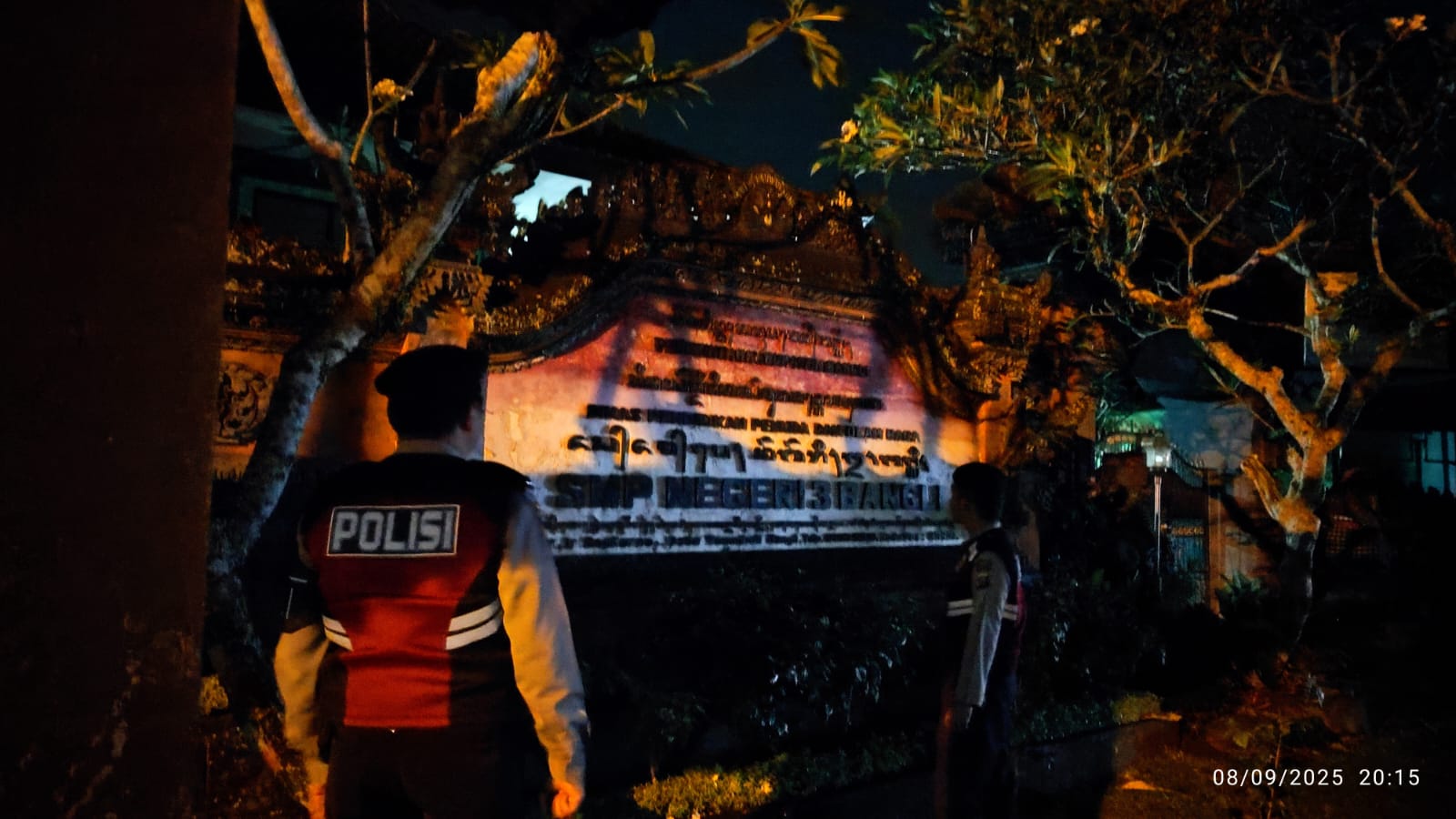 Satuan Samapta Polres Bangli Laksanakan Patroli Pada Malam Hari di SMPN 3 BANGLI, Untuk Antisipasi Gangguan Kamtibmas.