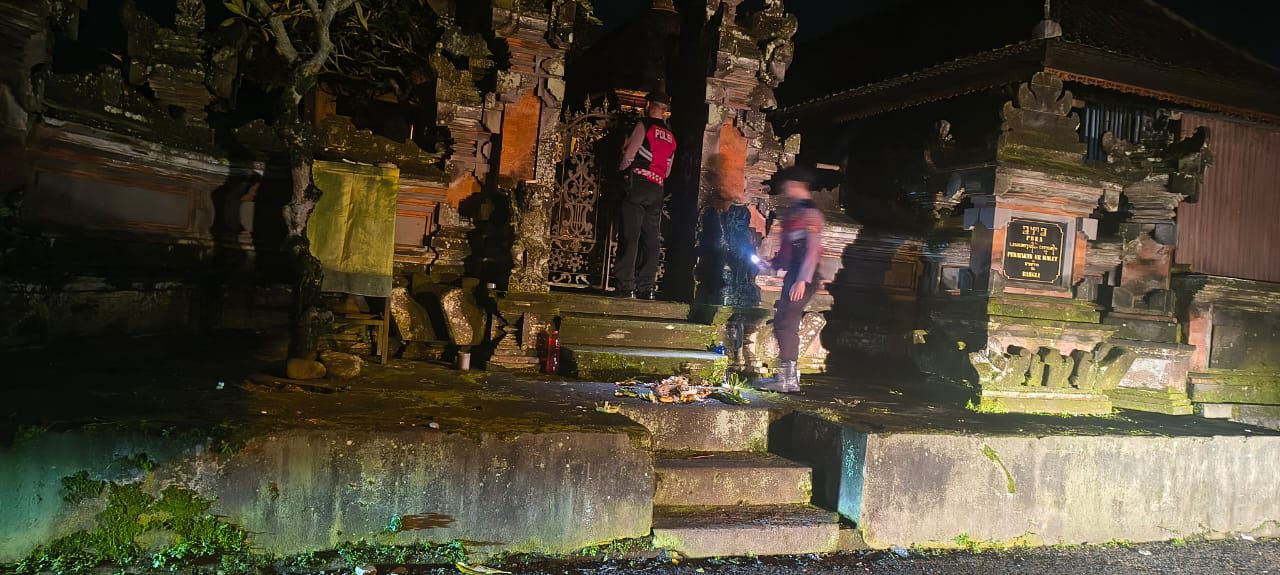 Menjaga Situasi Tetap Kondusi Pada Malam Hari, Sat Samapta Polres Bangli Sambangi Tempat Suci Pura Penataran Er Malet, Kel. Kawan, Kec. Bangli