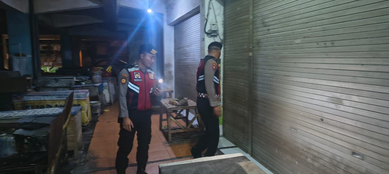 Antisipasi Gangguan Kamtibmas Pada Malam Hari, Personil Samapta Polres Bangli Lakukan Patroli Malam di Areal Pertokoan Pasar Kidul Bangli.