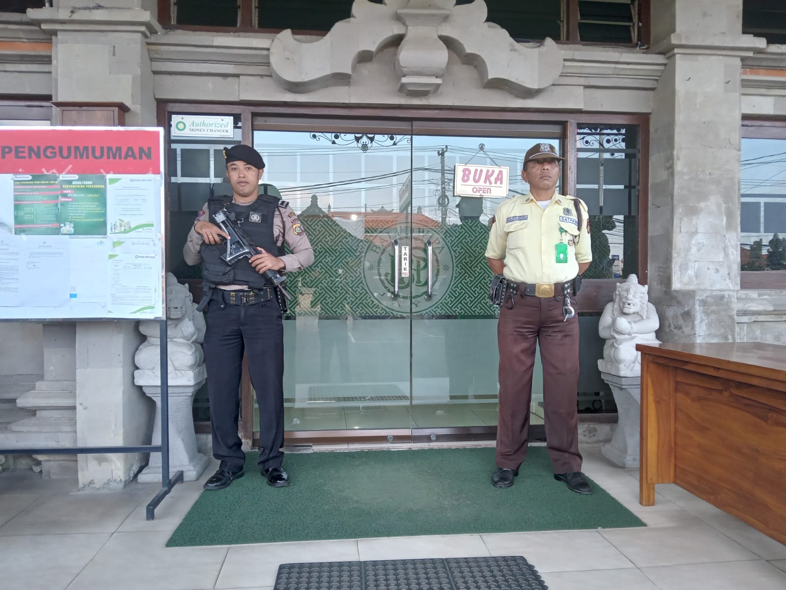 Unit Pam Obvit Sat Samapta Res Bangli Melaksanakan Pengamanan di Obyek Vital Bank BPD Bali Cabang Bangli.