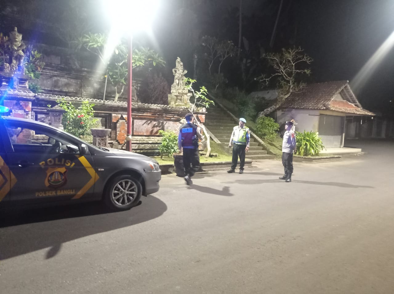 Menjaga Situasi Tetap Kondusif, Personil Polsek Bangli Intensifkan Kegiatan Blue Light Patrol