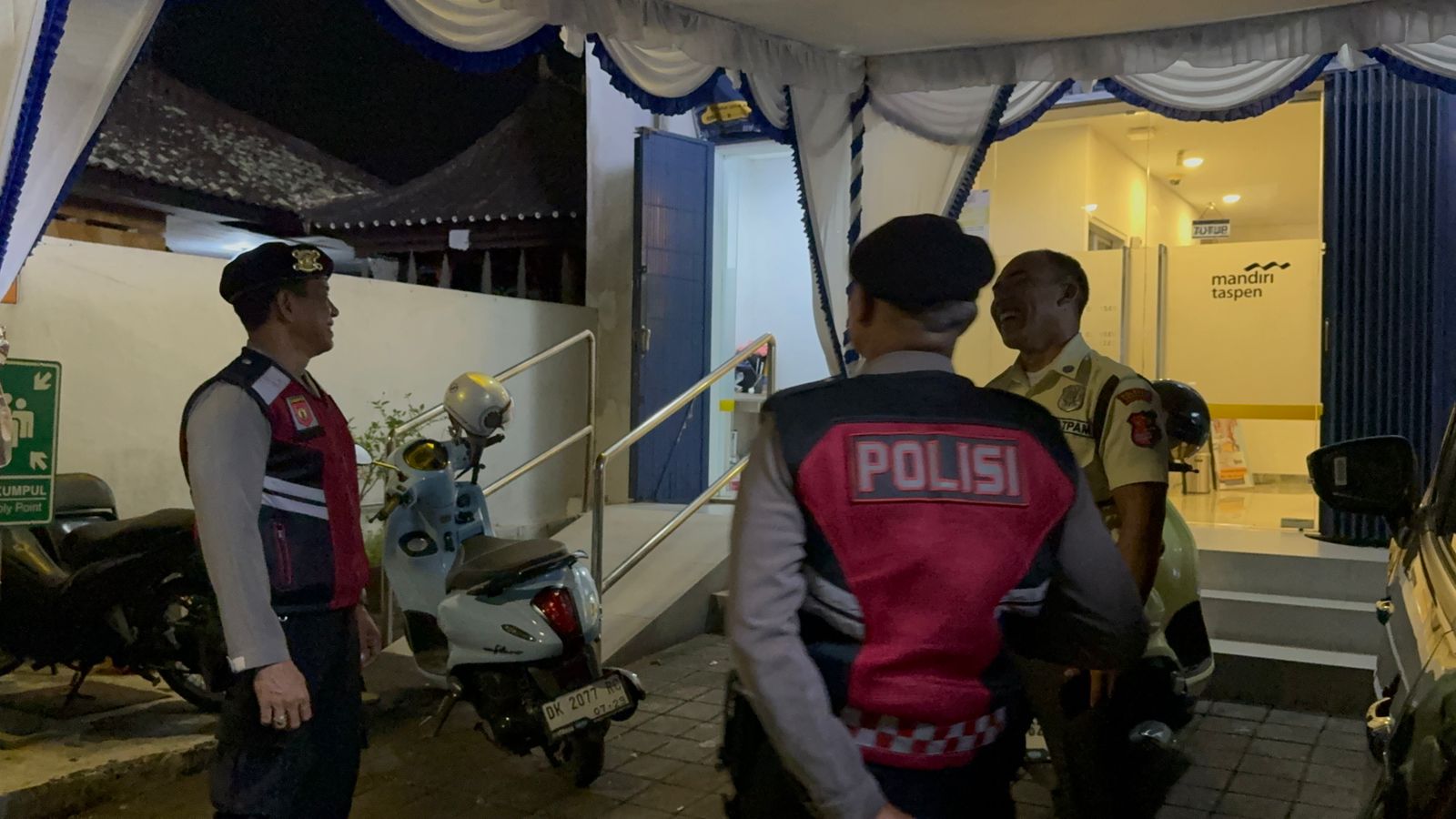 Sat Samapta Res Bangli Laksanakan Patroli Dialogis Dan Himbauan Kamtibmas Kepada Satpam Obyek Vital Bank Mandiri Taspen Cabang Bangli.