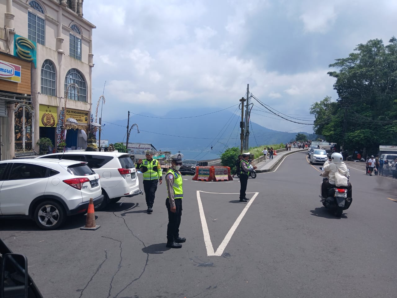 Personel Polres Bangli Berikan Atensi Penuh Kunjungan Wisatawan di Obyek Wisata Penelokan Kintamani
