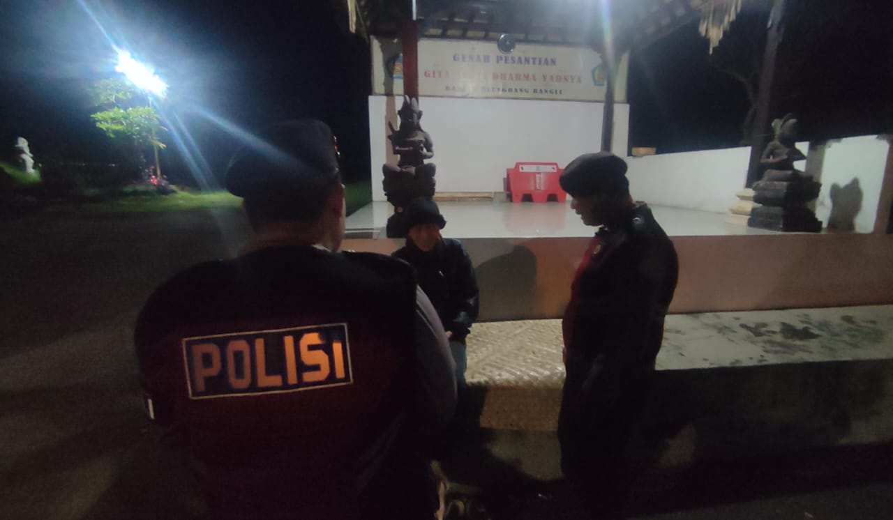 Menjaga Situasi Tetap Kondusi Pada Malam Hari, Sat Samapta Polres Bangli Sambangi Tempat Suci Pura Dalem Penuggekan, Kec. Bangli