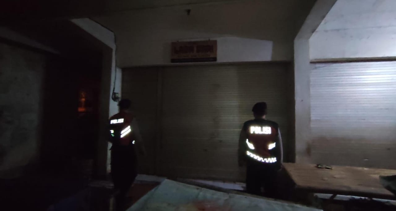 Antisipasi Gangguan Kamtibmas Pada Malam Hari, Personil Samapta Polres Bangli Lakukan Patroli Malam di Areal Pertokoan Pasar Kidul Bangli.