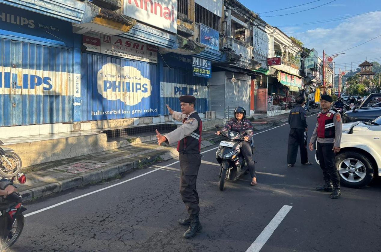 ATENSI ARUS LALULINTAS TETAP LANCAR, UNIT TURJAWALI SATUAN SAMAPTA RES BANGLI LAKSANAKAN PENGATURAN