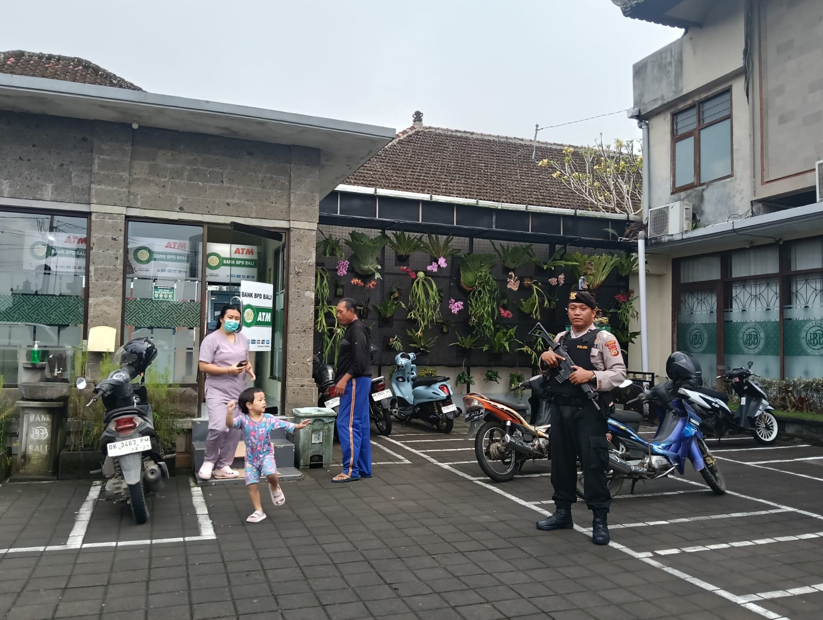 Unit Pam Obvit Satuan Samapta Polres Bangli Melaksanakan Pengamanan di Obyek Vital Bank BPD Bali Cabang Bangli.
